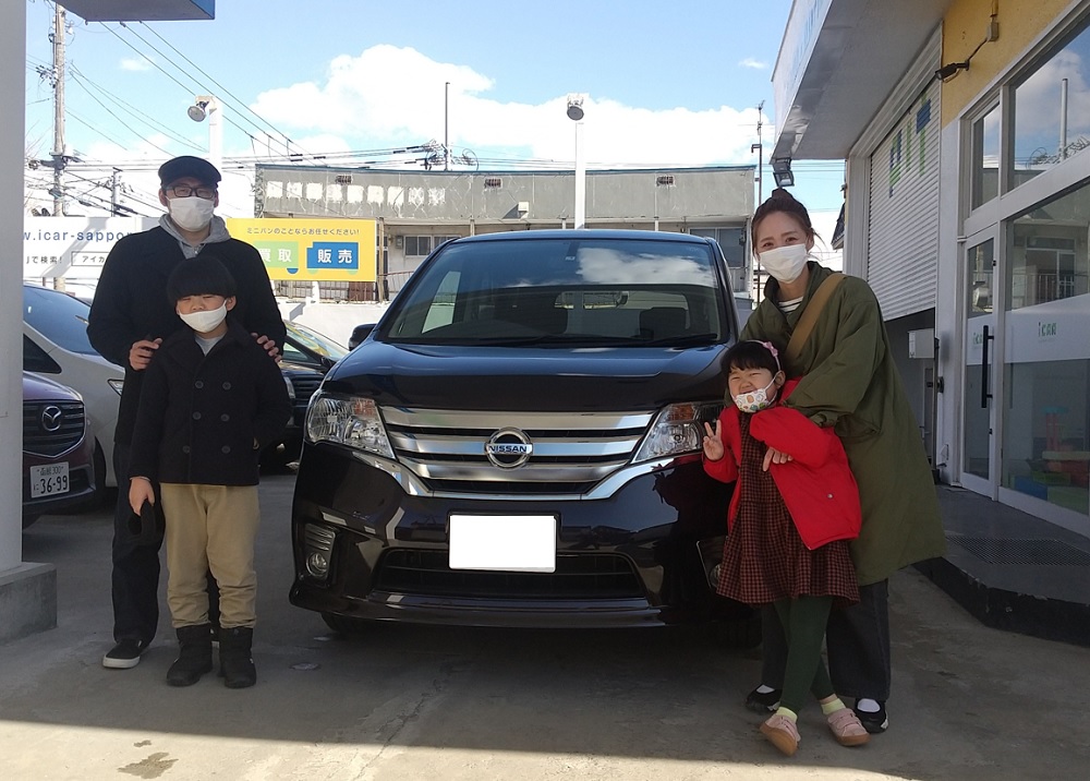 手稲区 M様 ニッサン セレナ ハイウェイスター この度は数ある中古車販売店の中から当店にてお任せいただき誠にありがとうございました。 素敵なご納車写真ありがとうございます !(^^)! 仕上がりましたセレナさんでキャンプなど、ご家族様でのお出かけに活躍させてあげて下さい! 車検・整備などのお問い合わせお待ちしております。 今後とも末長いお付き合いの程、宜しくお願い致します。 M様 この度は誠にありがとうございました。