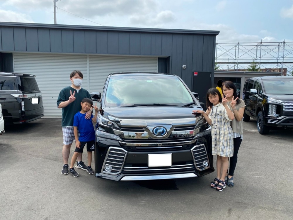 豊平区 I様 トヨタ ヴェルファイアHV ZR-G この度は数ある中古車販売店の中から当店にてお任せいただき誠にありがとうございました。 お待たせいたしました! 本日、ご納車となりました。 20ヴェルファイアから30ヴェルファイアにお乗り換えでお子さん達にも気に入って頂けました! ご家族皆様ご旅行やドライブなど素敵なカーライフをお過ごしください! 今後とも末永いお付き合いの程、宜しくお願いいたします。 I様 この度は誠にありがとうございました!