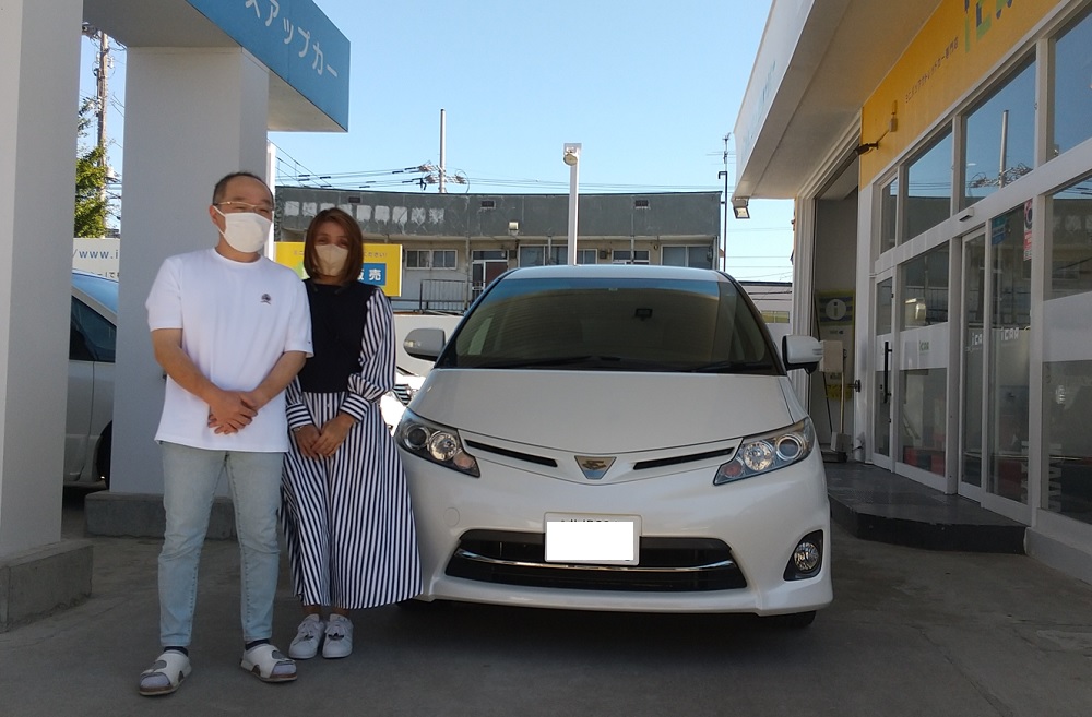 南区 I様 トヨタ エスティマ アエラスレザーパッケージ この度は数ある中古車販売店の中から当店にてお任せいただき誠にありがとうございました。 奥様お気に入りのエスティマ、ご満足いただけたようで良かったです (^▽^)/ お時間がございましたら「ワンちゃん」も連れてアイカーへお立ち寄りください!! 今後とも末永いお付き合いの程、宜しくお願い致します。 I様 この度は誠にありがとうございました。