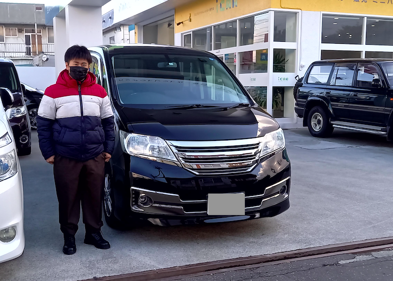上川郡 K様 ニッサン セレナ ライダー 本日、無事にご納車となりました! ナビの件、失礼しました<(_ _)> 入庫次第ご連絡差し上げますね。 若干の距離は離れておりますが、何かお困りの際はいつでもご連絡ください^^ K様 この度は誠にありがとうございました!