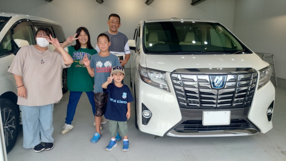 北広島市 S様 トヨタ アルファードハイブリッド G-Fパッケージ この度は、数ある中古車販売店の中から当店を 選んでいただき誠にありがとうございます! 休日に主に使用するとの事で ご家族皆様で旅行やドライブなど 素敵なカーライフをお過ごしください! また、ご近所様ですので 気軽にお立ち寄りください。 S様 この度は誠にありがとうございました!