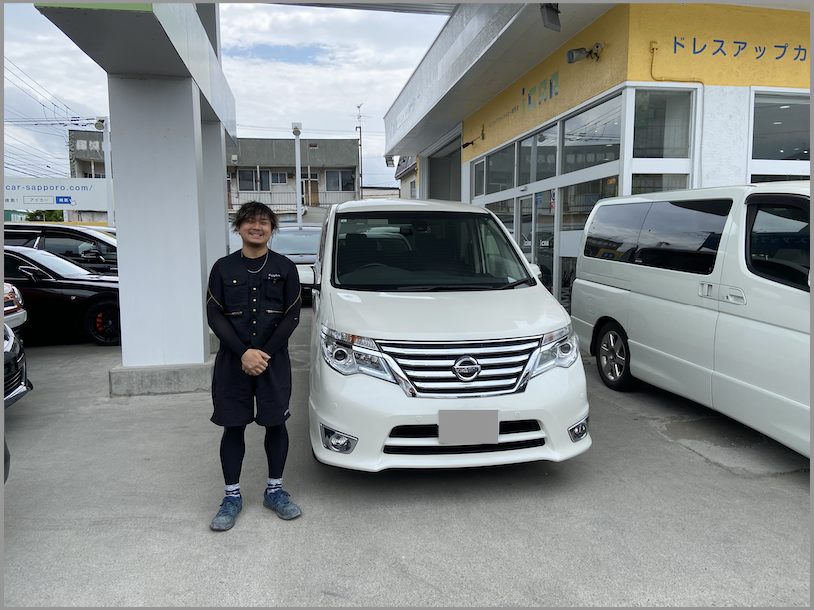 小樽市 K様 日産 セレナ ハイウェイスターVセレクションセーフティー 本日無事にご納車となりました! 朝一にご来店ありがとうございます。ご満足いただけてとても嬉しく思います。 セレナで素敵なカーライフをお過ごしくださいね^^ お車の事で何かございましたらいつでもご連絡をお待ちしております。 今後とも末永いお付き合いの程、よろしくお願いいたします。 K様 この度は誠にありがとうございました!