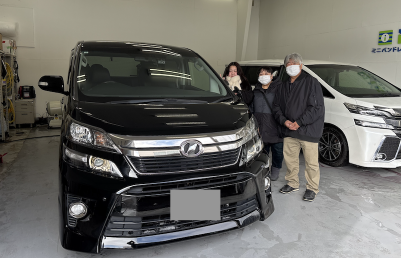 空知郡 O様 トヨタ ヴェルファイア 2.4Zゴールデンアイズ 大雪の影響でご納車日の変更などがございましたが、本日無事にご納車完了です! 天気も良好でご納車日和でしたね^^ ビカビカに施工したボディーコーティングも喜んでいただけて嬉しく思います! ご家族様で素敵なカーライフをお過ごしくださいね^^ 今後とも末永いお付き合いの程、よろしくお願いいたします。 O様 この度は誠にありがとうございました。