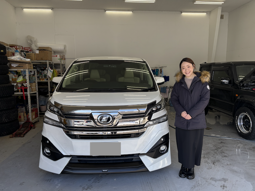 北区 Y様 トヨタ ヴェルファイア エグゼクティブラウンジ 本日無事にご納車です! 昨晩は雪が降っておりましたが、朝には雲ひとつ無い晴天!ご納車日和ですね^^ コーティングも施工してビッカビカです!喜んでいただけてスタッフ一同、とても嬉しく思います。 ヴェルファイアで素敵なカーライフをお過ごしくださいね^^ 今回、長期保証やメンテナスパックにもご加入いただいておりますので、お車の事は当社にお任せください!何かございましたらいつでもご連絡をお待ちしております! 今後とも末永いお付き合いの程、よろしくお願いいたします。 Y様 この度は誠にありがとうございました。