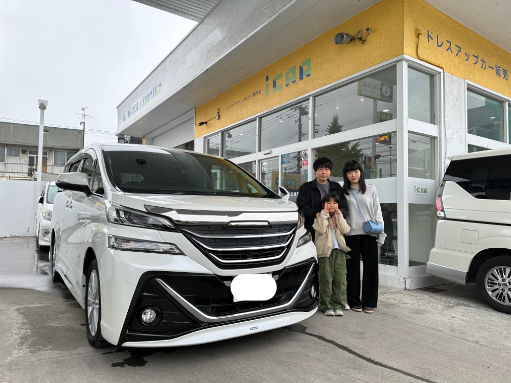 東区 W様 トヨタ ヴェルファイア 3.5ZA 本日、無事にご納車完了いたしました。 お子様もとても気に入ってる様子でしたので、一安心しました( ◠‿◠ ) 今後のカーライフをご家族で楽しんでいただければ幸いです。 アイカー保証もメンテナンスパックも加入いただけてるので万全ですね♪ お車の事で何かあればいつでもご連絡くださいね★ 今後とも末永いお付き合いの程、宜しくお願い致します。 W様 この度は誠にありがとうございました。