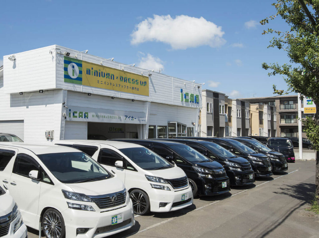 店舗情報 店舗情報 Shops ホーム » 店舗情報 アルファード/ヴェルファイア専門店アイカー 住所 北海道札幌市東区北22条東20丁目5-29 電話番号 011-769-0419 FAX番号 011-769-0469 営業時間 10:00 - 18:30 定休日 毎週月曜日・大型連休 専門店として、「アルファード」「ヴェルファイア」を中心に、豊富なミニバンの在庫をラインナップしています。「まだ購入するか決まっていない」「まずは実車を見てみたい」という方も、ぜひお気軽にご来店ください。 店舗情報を見る 在庫一覧 ミニバン専門店アイカー 札幌新琴似店 住所 北海道札幌市北区新琴似7条11丁目7-13 電話番号 011-788-3691 FAX番号 011-788-3692 営業時間 10:00 - 18:30 定休日 毎週月曜日・大型連休 高品質でお手頃な価格の車両を厳選して集めた、ミニバン専門店です。「予算内でできるだけ程度の良いクルマを探したい」というご期待にお応えします。アットホームな雰囲気の店舗ですので、ご家族みなさまでお気軽にご来店ください。 店舗情報を見る 在庫一覧 ミニバン専門店アイカー 北広島インター店 住所 北海道北広島市大曲幸町1丁目11−13 電話番号 011-807-0173 FAX番号 011-807-0174 営業時間 10:00 - 18:30 定休日 毎週月曜日・大型連休 高年式・高品質なミニバンを取り揃えた、アイカーグループのフラッグシップショップです。最新モデルの乗り心地やクオリティを実際に体感していただけます。北広島インターチェンジのすぐそばですので、ドライブついでにぜひお立ち寄りください。 店舗情報を見る 在庫一覧 アイカーピット 北海道運輸局認証工場 住所 北海道札幌市東区伏古8条2丁目5-24 電話番号 011-782-2228 FAX番号 011-782-3048 営業時間 10:00 - 18:00 定休日 毎週日曜日・大型連休 国家2級整備士が3名在籍する、アイカーグループの自社整備工場です。おクルマをご購入いただいた後のメンテナンスはもちろん、車検や日頃のちょっとした不安など、お気軽にご相談ください。重整備にも対応しています。 認証工場:11-1874 店舗情報を見る 在庫一覧