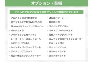 ★アルパインBIGX9型SDナビ(地デジフルセグTV/DVD/CD/SD/Bluetooth/AM/FM/ミュージックサーバーなど)★バックカメラ★プリクラッシュセーフティ★レーダークルーズコントロール★インテリジェントクリアランスソナー★レーンディパーチャーアラート★アイドリングストップ★純正一体型エンジンスターター★運転席パワーシート★寒冷地仕様★ワイパーデアイサー★オートブレーキホールド★電動パーキングブレーキ★コムテック前後ドライブレコーダー★ビルトインETC★オートハイビーム★LEDヘッドライト★LEDフォグライト★各種LED★