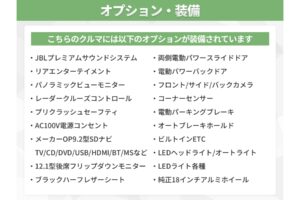 ★JBLプレミアムサウンドシステム★リアエンターテイメント★パノラミックビューモニター★レーダークルーズコントロール★プリクラッシュセーフティ★メーカーオプション9.2型SDナビ(地デジフルセグ/CD/DVD/USB/HDMI/Bluetooth/ミュージックサーバーなど)★メーカーオプション12.1型後席フリップダウンモニター★ワンタッチスイッチ付両側電動パワースライドドア★電動パワーバックドア★ブラックハーフレザーシート★運転席パワーシート/シートメモリー★助手席パワーシート/電動オットマン★エグゼクティブパワーシート/電動オットマン★フロント/サイド/バックカメラ★コーナーセンサー★電動パーキングブレーキ★オートブレーキホールド★ステアリングヒーター★ビルトインETC★AC100V電源コンセント★LEDヘッドライト/オートライト★LEDフォグランプ★LEDライト各種★純正18インチアルミホイール★他多数!