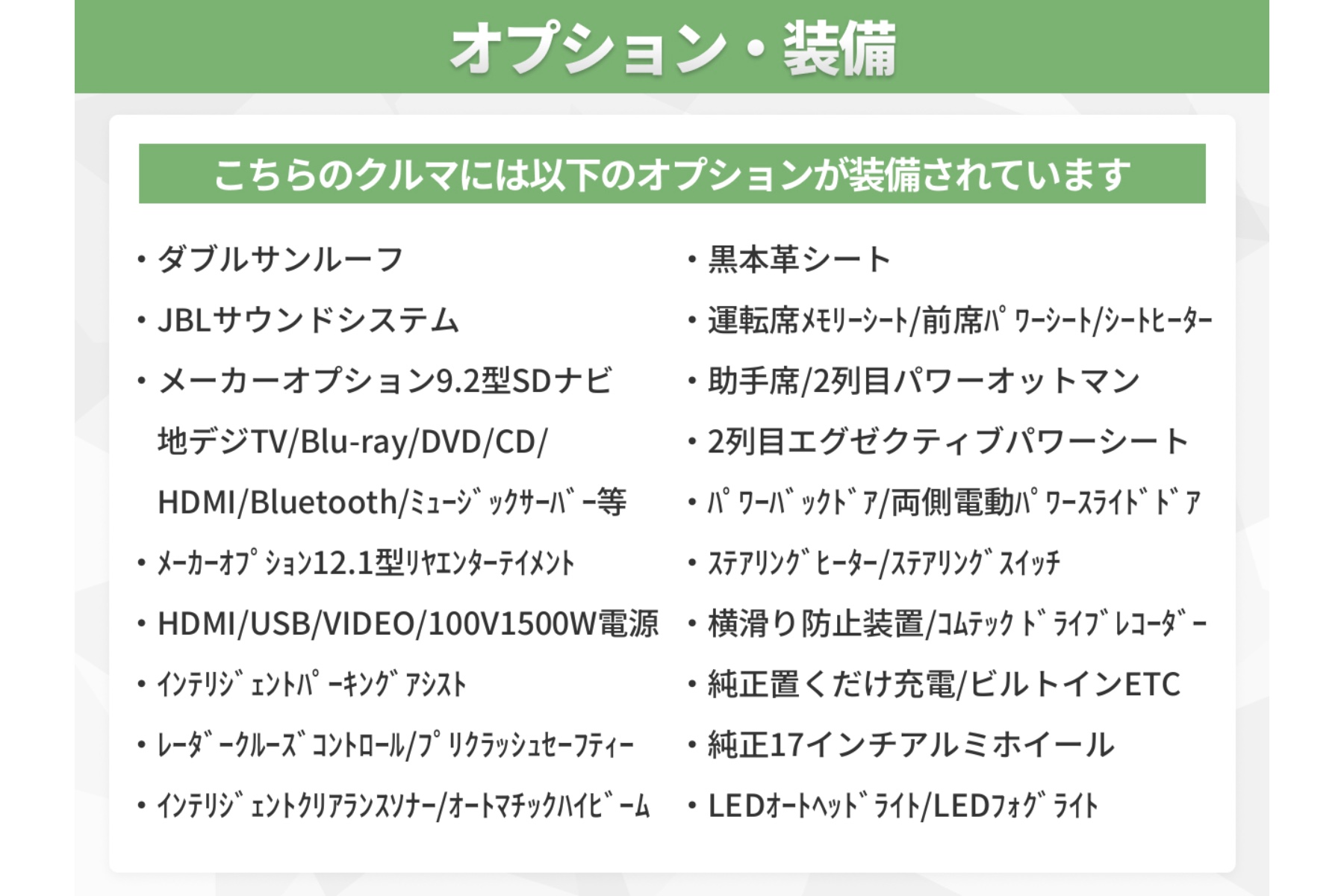 上級グレードらなではのラグジュアリー感がたまらない1台!外装はノーマル状態で内装は黒本革シートやダブルサンルーフなど希少性の高い人気の装備が充実♪ 上質なカーライフをお求めの方は必見です!!