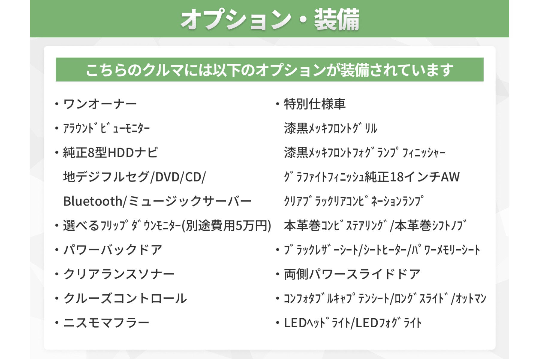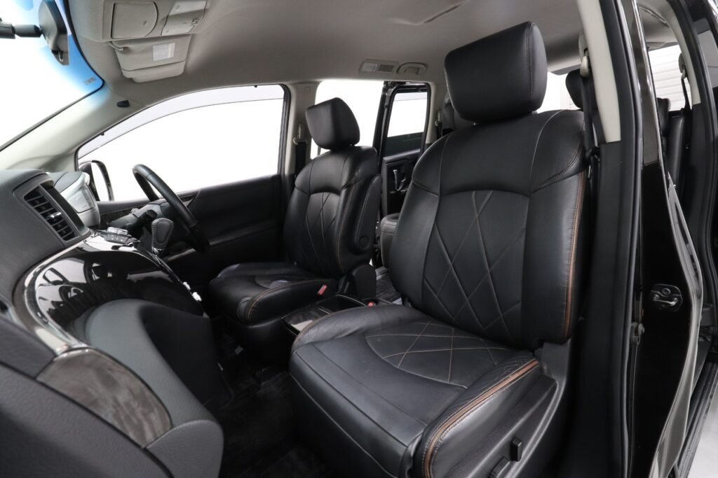 純正8型HDDナビ・パワーバックドア・ブラックレザーシート・シートヒーター搭載のエルグランドです♪クリアランスソナーも付いているので運転の不慣れな方でも安心ですね★もちろん内外装も良好です!!