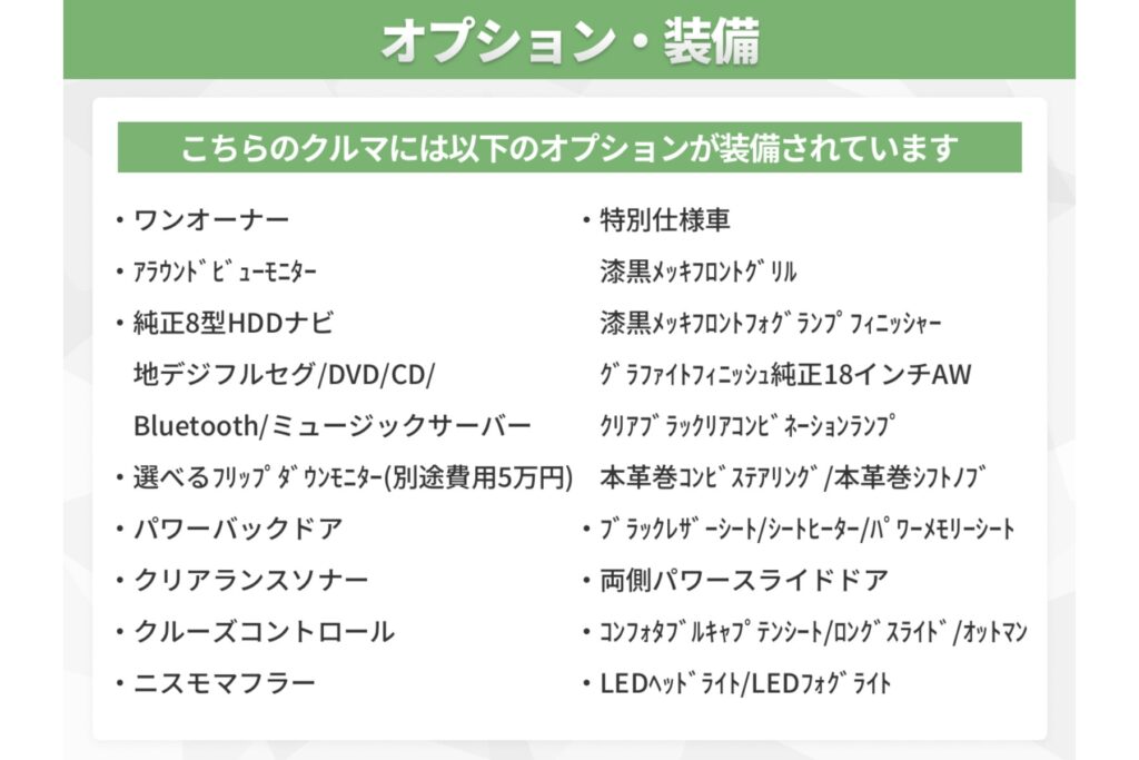 上記の支払総額には「自賠責保険料」「税金(法定費用含む)」「検査登録手続代行費用」「車庫証明手続代行費用」「リサイクル預託金相当額」「アイカー保証 1年間 走行距離無制限」が含まれます。