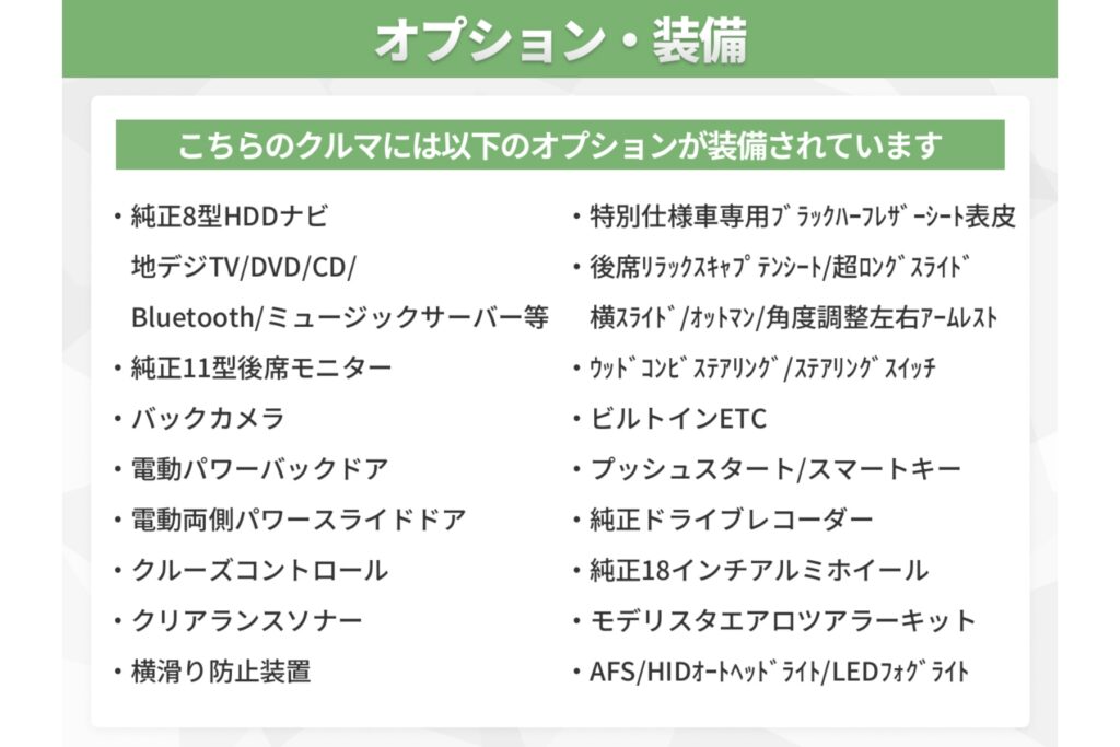 上記の支払総額には「自賠責保険料」「税金(法定費用含む)」「検査登録手続代行費用」「車庫証明手続代行費用」「リサイクル預託金相当額」「アイカー保証 1年間 走行距離無制限」が含まれます。