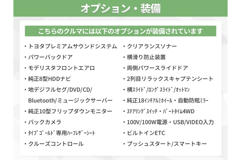 トヨタプレミアムサウンドシステム・純正8型HDDナビ・純正フリップダウンモニター・パワーバックドア搭載!タイプゴールドも段々希少となってきましたので早い者勝ちです♪もちろん内外装ともに良好です★